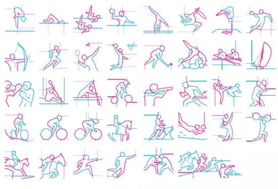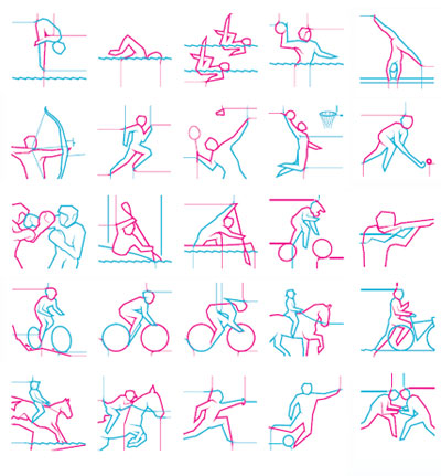 pictograms of each sport were first used at the 1948 games in london and have become a regular feature of the olympic movement since the tokyo games in 1964. otl aicher’s pictograms for the 1972 olympics in munich are largely regarded as the design benchmark.