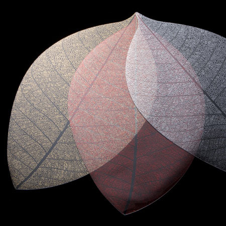 we all have had primitive memories about using leaves, stones and sticks as table wares. in some cultures, foods are still wrapped in leaves which are used as a case for cooking purposes. ‘a leaf x 10’ was inspired from historical eating rituals in japan, when it was customary to eat a meal on a leaf. the mat’s shape and detailing came from a small leaf which was enlarged to ten times its original size. each vein line of the leaf was carefully traced. ‘a leaf x 10’ combines nature with eating, bringing us back to nature and where we started from.