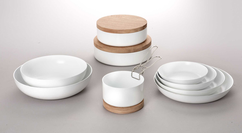 wooden cylinders act as both lids and trivets