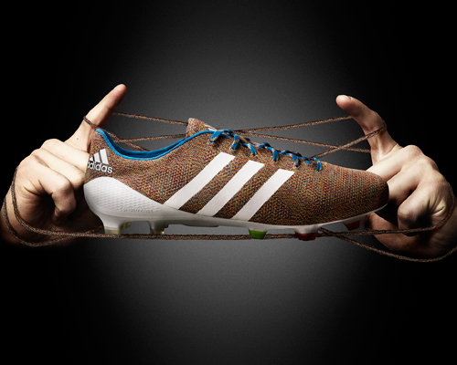 in order to combine the comfort and responsiveness of playing barefoot with the protection of a traditionally designed performance shoe, adidas has launched ‘samba primeknit’, the world’s first knitted football boot. the limited edition boots are the first to have an upper that is entirely knitted from heel-to-toe, providing a bespoke second-skin fit that retains the strength of a conventional pair of cleats. high levels of flexibility and comfort are provided via the one-piece knitted upper; the yarns used to construct ‘primeknit’ provide stability and strength equal to conventional boots. each yarn receives a high precision coating that guarantees water resistance even while playing on a wet pitch.