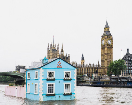 crossing local neighborhoods such as chelsea, westminster and canary wharf, the house will host community events and overnight stays, providing new perspectives on the city. the fully functioning project, which celebrates new rules that mean that UK residents can earn a 15 per cent pay rise by sharing their homes through sites like airbnb, will meander along the river throughout until saturday, may 22.