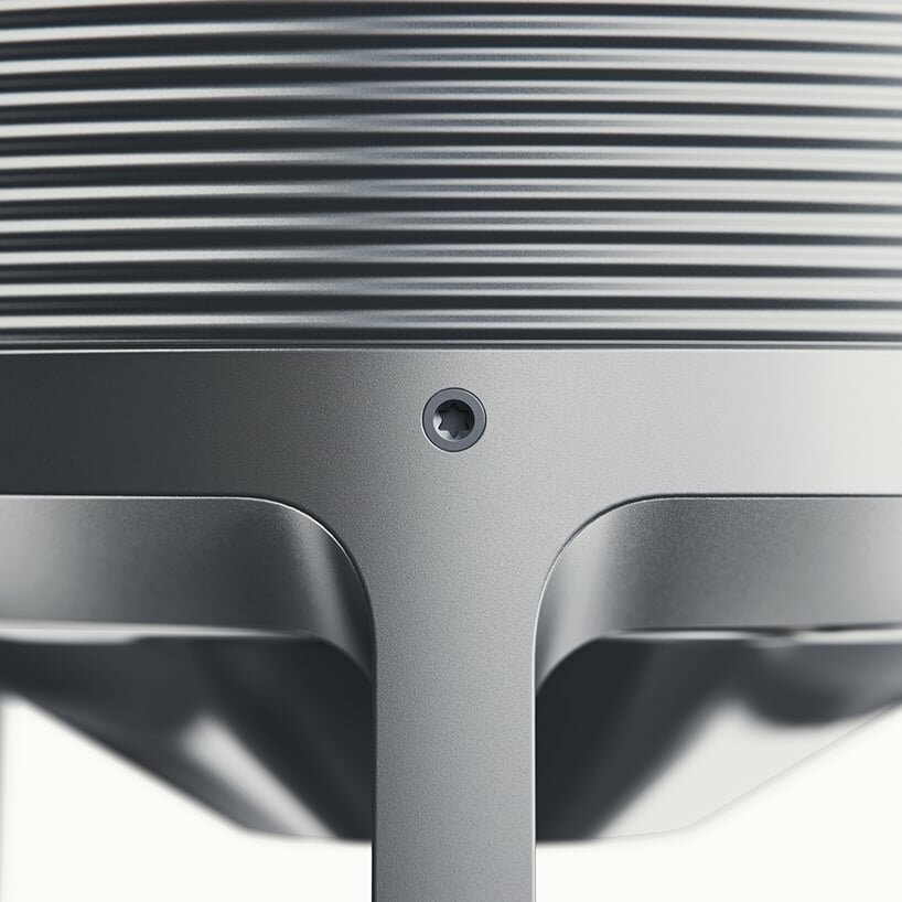 Designer Alexander Shayle conceives a bold and contemporary aesthetic that preserves the character of its industrial muse while scaling down to a domestic product size. Crafted from a high recycled content aluminum alloy, the Silo/Mill utilizes die casting and CNC machine processes to ensure precision in its parts, contributing to an extended product lifespan. The assembly of both Silo and Mill employs bolts and threaded elements, allowing for disassembly and easy repair, promoting sustainability in product maintenance. The Mill, with its user-friendly interface, features a large, tactile textured dial that enables users to achieve micron fine or coarse grind sizes with ease. This flexibility proves especially useful when transitioning between various coffee brewing methods.