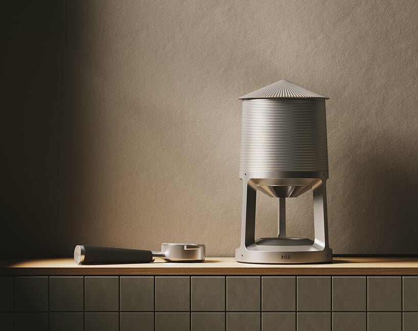 Alexander Shayle infuses a touch of whimsy to the world of coffee products with Silo/Mill — a conceptual grinder and vacuum storage jar that draw inspiration from the industrial charm of grain silos and agricultural architecture. The project embodies and transforms identifiable visual elements from these structure structures, such as corrugated steel paneling, robust structural support beams, and raw materiality. As a result, the utilitarian bulk storage concept of grain silos is reinterpreted into a vacuum-sealed container for freshly roasted coffee beans, while the electric grinder, designed to process these beans, takes inspiration from traditional Windmills used for milling grains in households.