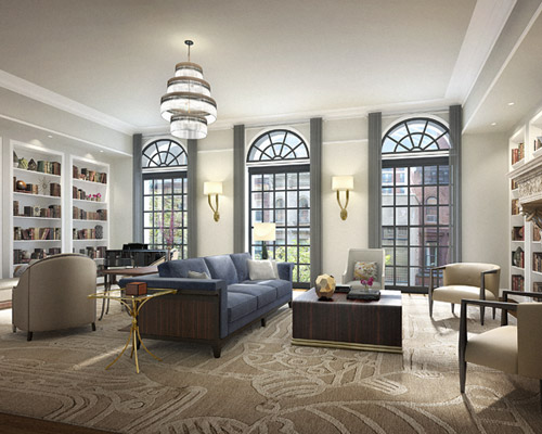 having designed luxury accommodations such as the dorchester, hotel bel-air, waldorf-astoria and the carlyle, hotel designer alexandra champalimaud reveals her first residential project in new york city. situated on madison avenue next to the whitney museum,33 east 74th street‘ integrates a collection of brownstones built by S.M. styles in 1876, with a turn-of-the-century townhouse – the ‘atterbury mansion’ originally designed for banker julian wainwright robbins and his wife sarah robbins (niece of cornelius vanderbilt) – conceived by grosvenor atterbury to create together with developers beyer blinder belle architects & planners in its entirety, ten distinctive condominiums.