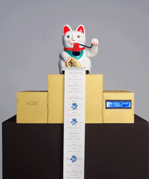 the altered maneki-neko stamps a paw print on current headlines for every 1000 new views