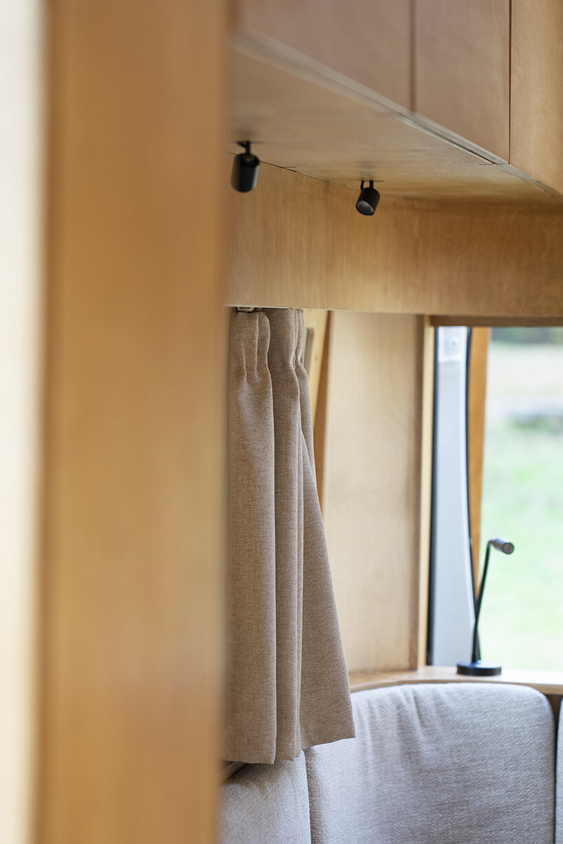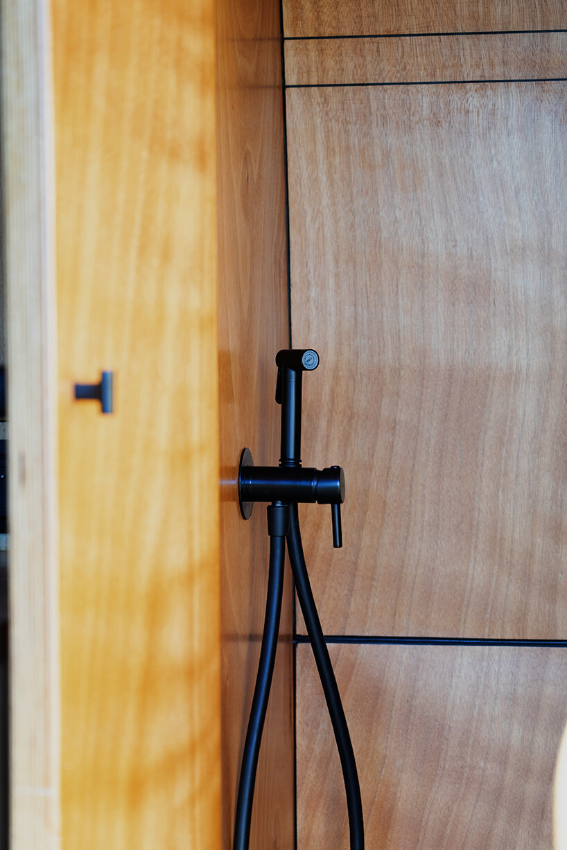 to keep the vehicle energy self-sufficient, atelier JMCA equipped it with two 330 watts solar panels on the car roof and two 80L water tanks for fresh water and wastewater. the van also combines both insulation and a heating system. the inner car body is covered with a thin layer of cork, combined with other 45mm thick flexible panels made of wool, hemp, flax, and cotton. meanwhile, a diesel heating system allows owners to use the van any time of the year.