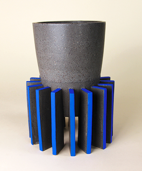 medansky has been named one of six ‘rising talents‘ at the second edition of maison&object americas 2016 — a global showcase held in miami from may 10-13. hosted within a specially-curated space at the fair, medansky has presented a collection of vessels and sculptural objects that integrate industrial and structural motifs in their design. rendered in a subdued selection of black, grey and speckled beige with bold bursts of bright blue, the pieces build on medansky’s existing work while serving as a point of departure for new geometries and tonal palettes.