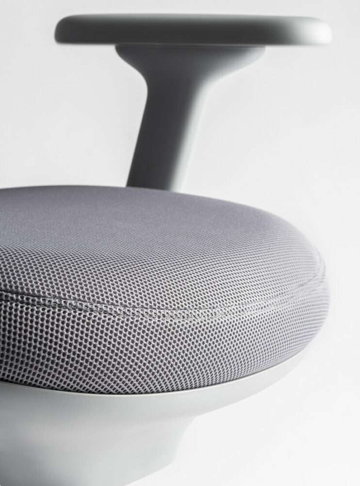 Task chairs typically have a highly technical expression that reflects their focus on functionality. Our collaboration with Allsteel was about finding a way to reduce that technical expression to enhance the sense of visual comfort and create a simple appearance. The result is an accessible companion for the evolving workspace, where neutrality and simplicity allow more traditional furniture typologies to be used in various settings. This essential design maintains an ownable identity through its simple yet sculptural form and tactile materiality,’ states Benjamin Hubert.