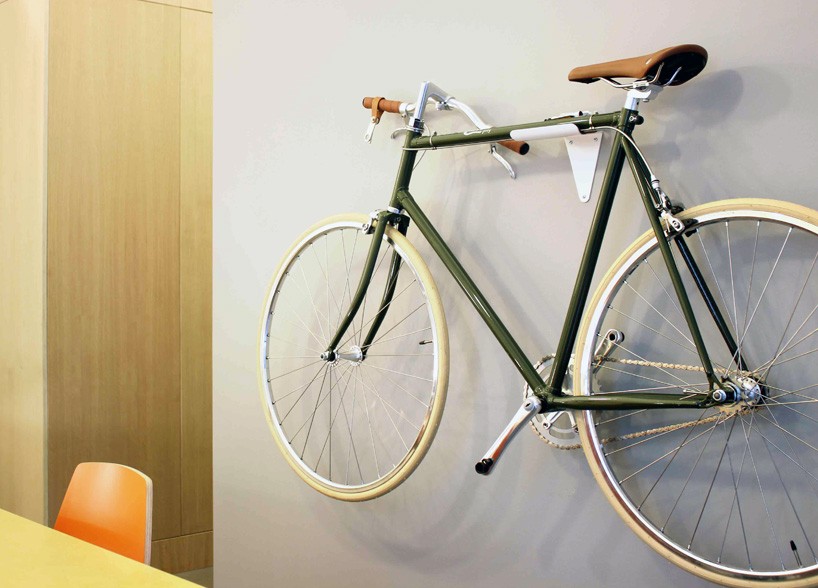 with the rising number of people living in cities which is already above 50%, every square foot of space counts. the ‘flipcrown’, developed by the self-named start-up company, is a patent pending headset locknut that enables handlebars to be turned or flipped by 90°, for easy storage. positing the steering bars parallel with the bike’s top-tube, owners can lean it against or even mount it on the wall. it can be retrofitted to most two-wheelers by replacing the standard locknut on the threaded headset, but does come standard to the special edition ‘slimbikes’. combined with chrome quick-release pedals and a custom bicycle shelf, the narrow space solving design is seeking funding via its indiegogo campaign.