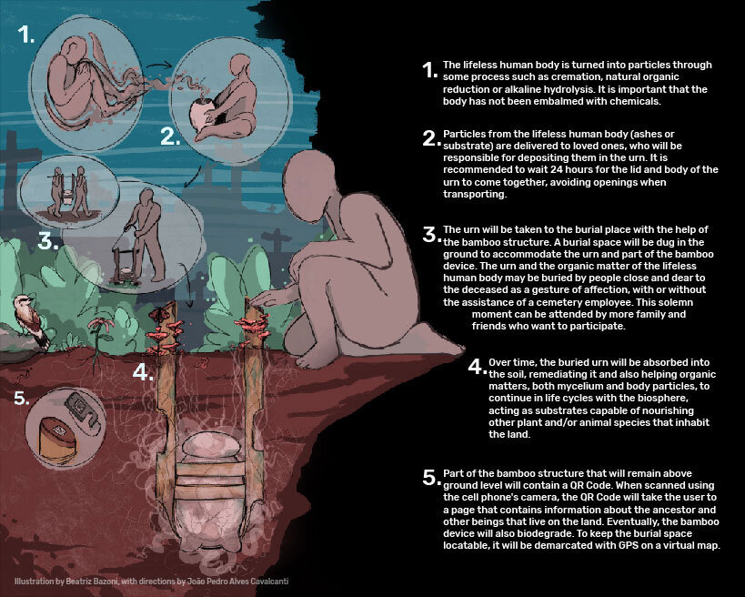 the biodegradable urn and a bamboo structure merge traditional rituals with ecological awareness