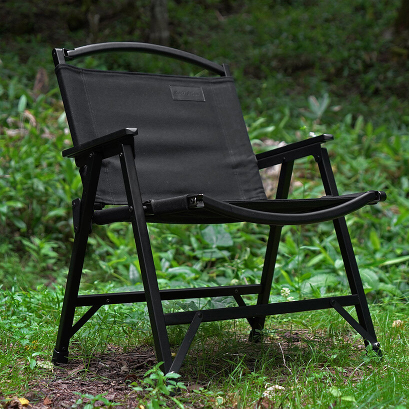 The hexagonal table is complemented by the Japanese brand’s folding chair, which is of course all black. The chair is made of beech wood, often used for Nordic furniture, and is finished with a careful and delicate black powder coating that gives it its distinctive dark appearance. The backrest is made of cotton canvas fabric that’s resistant to sparks, so you don’t have to worry about holes in your chair. Not only does it fold, but it also breaks down into its individual parts to make it even more compact and portable.