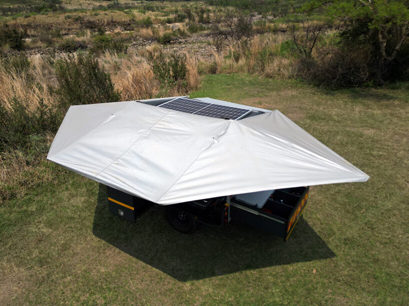 South Africa- and US-based camping brand Bundutec recently launched BunduTRAIL, a towable vehicle that quickly expands into a living space in under five minutes. Shaped like a chuckwagon, the trailer sports a built-in electric roof system that lifts when needed to make room for an outdoor kitchen, a sleeping pod (BunduTOP), a 360-degree awning (BunduAWN), and a standalone dressing room (BunduSUITE). The starting price for a BunduTRAIL is reported at $28,000, but the company has yet to confirm the number on its website.