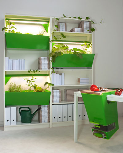 the nutrient-rich humus soil provides the base for growing vegetables and herbs in your bookshelf