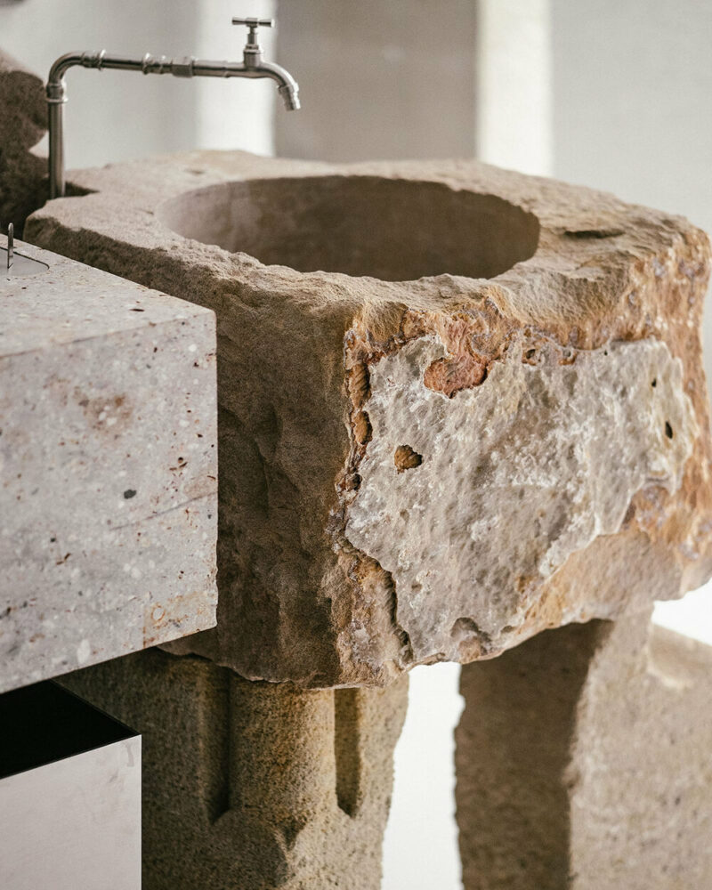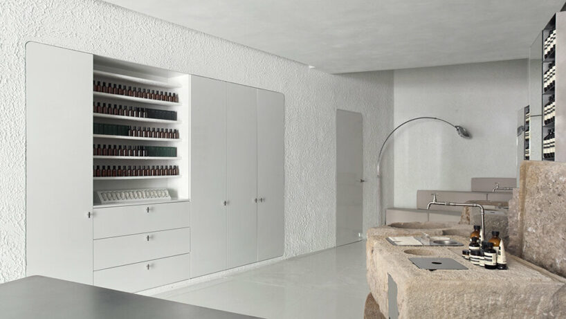 the design centers around a sculptural turntable topped with thirty-nine individual wooden tiles that flip and shift in real time as music plays.