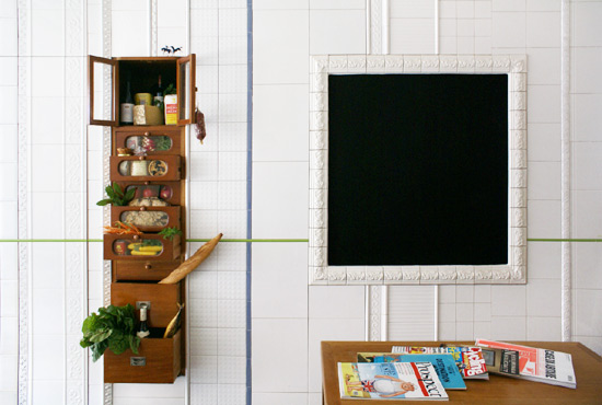 the tiles are set in an arrangement of vertical ‘stripes’ varying in width and texture