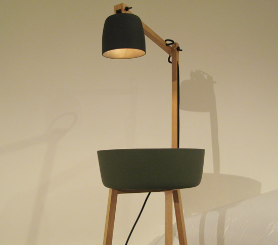 ‘tafelstukken’ is composed of a wooden leg base and neck with porcelaine lampshade and centerpiece bowl image © designboom