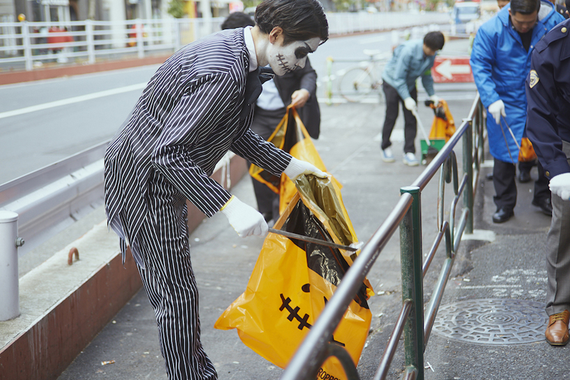 halloween in tokyo — especially in the shibuya and shinjuku neighborhoods — has become a not-to-be-missed attraction for people all over the world. but its popularity and high attendance rates has brought with it a litter problem once the celebrations are over. in order to help tokyo’s garbage problem after halloween,dentsu.inc designers tsudou honda, emika minaga, toshichi kaono and hiro misaegusa have designed the jack-o’-lantern trash bag to keep the city clean after the celebrations.