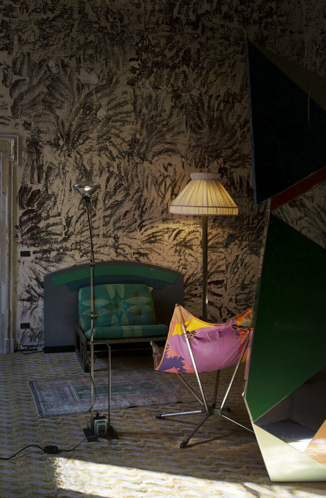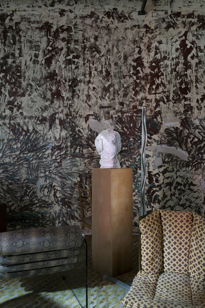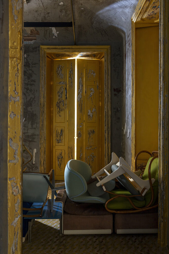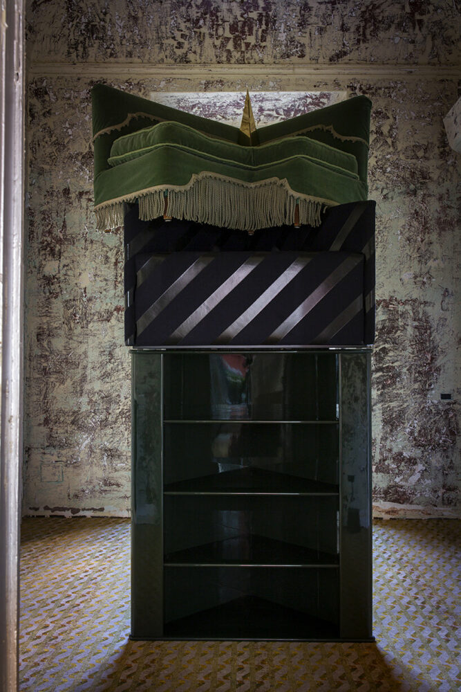 the design centers around a sculptural turntable topped with thirty-nine individual wooden tiles that flip and shift in real time as music plays.