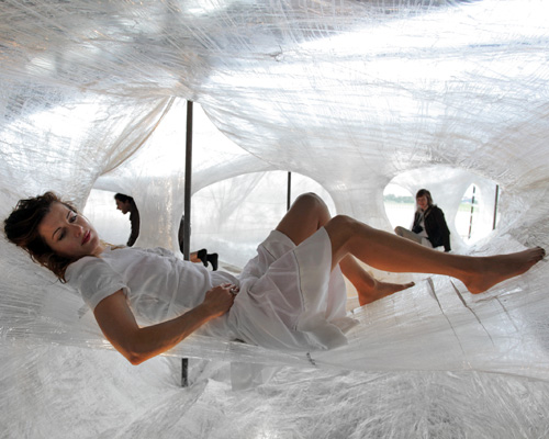 the stickiness of the tape allowed objects to be stuck to the walls of the installation image © designboom