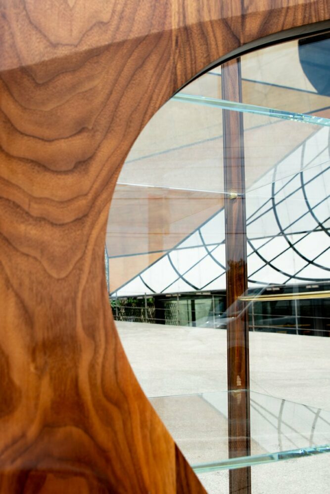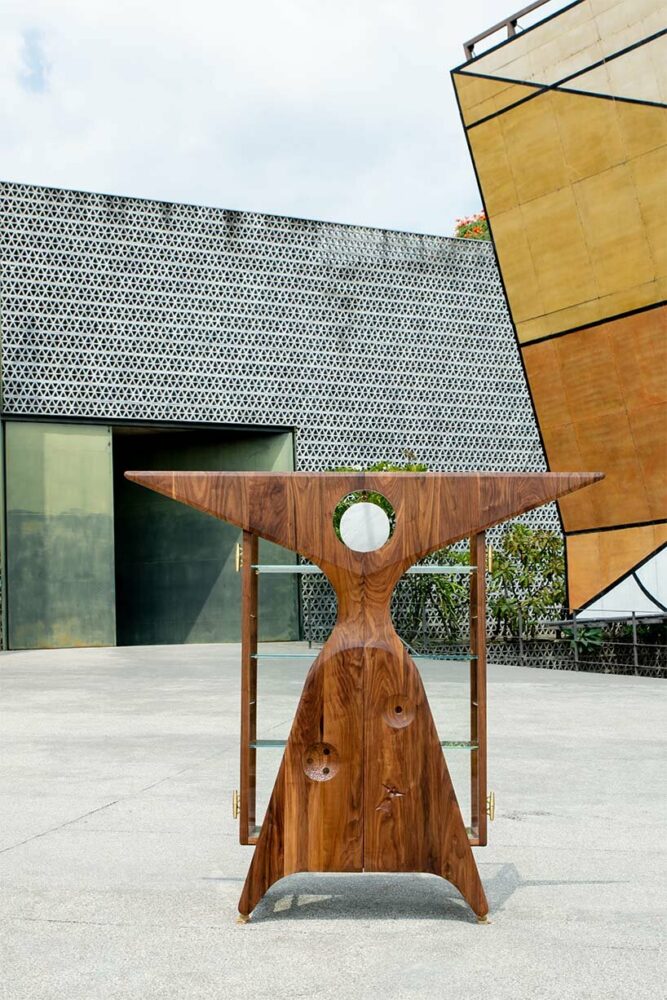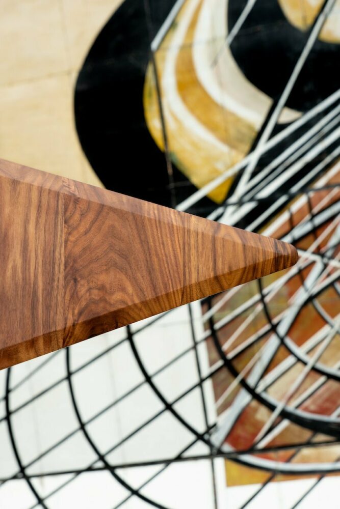 Each draws inspiration from the work of avant-garde dancer Ruth Page (1899-1991), her architecturally significant residence designer by Howard T. Fisher, and the sculptures crafted by Isamu Noguchi in homage to the dancer. The resulting pieces crafted primarily from wood sit in dialogue with the abstract and geometric mural enveloping La Tallera in Mexico.