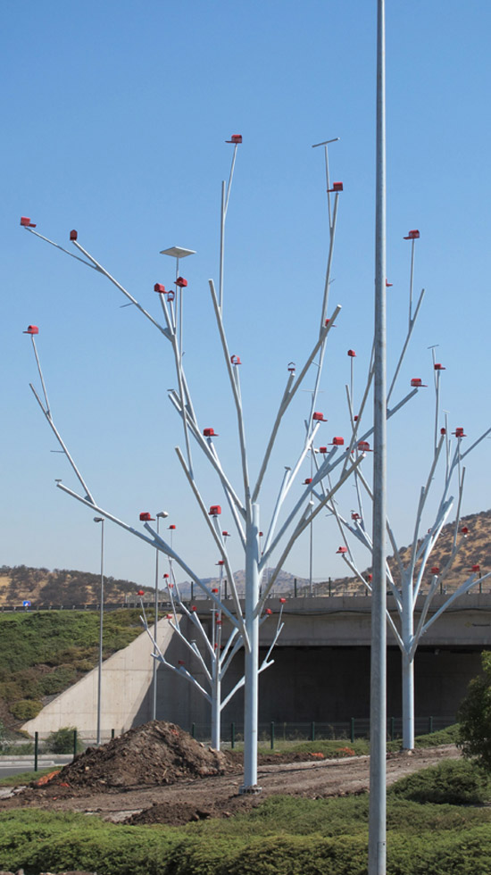 tree bases before the branches of bird houses and perches are installated