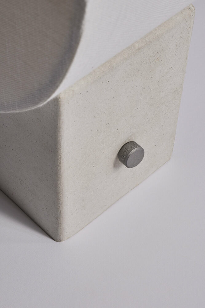 Incorporated into the lamp design is ReCeramixTM  — a new material innovation and substitute for traditional concrete, developed by Enkei. Not only does it significantly reduce cement usage – a major contributor to CO2 emissions, but it also keeps valuable resources in use. Instead of conventional sand, the startup opts for ceramic waste from construction sites, tackling the issues associated with both sand mining and improper ceramic waste disposal. This circular approach not only decreases environmental impact but also helps prevent potential soil and groundwater contamination, offering a comprehensive solution to waste reduction and landfill overflow.