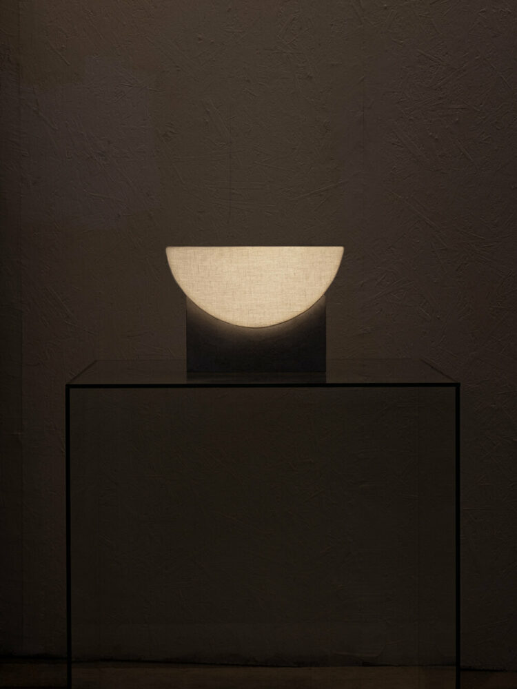 the table lamp’s two contrasting geometric forms blur the line between art and funtion
