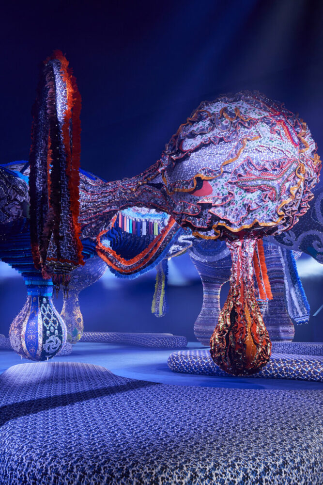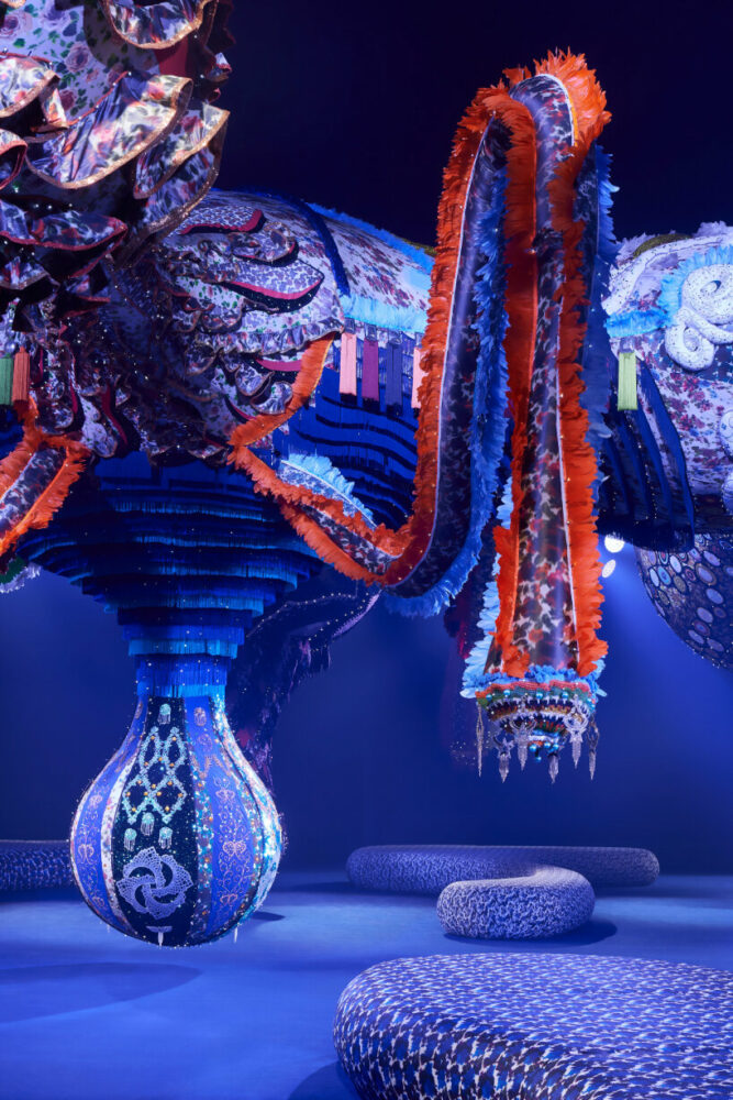 epic textile installation by joana vasconcelos sets the backdrop of dior's AW23 show