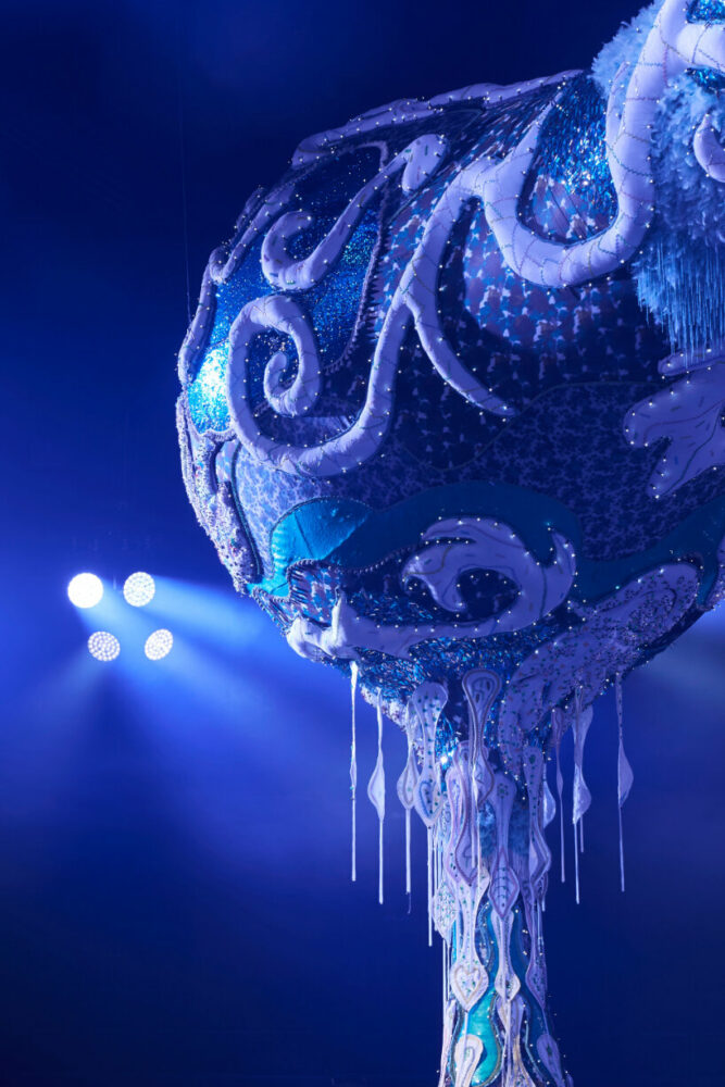 The artistic installation doubles as a relational exploration between monumental sculpture, human bodies, and inhabited clothing. Vasconcelos, who also designed the Wedding Cake for Waddesdon Manor, sees her set design almost as a sculptural dance between visual arts and fashion.
