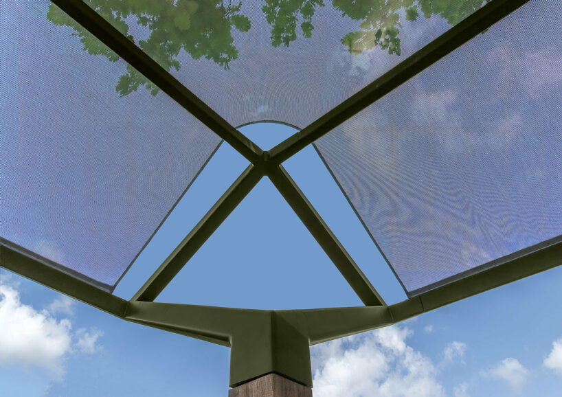 the design centers around a sculptural turntable topped with thirty-nine individual wooden tiles that flip and shift in real time as music plays.