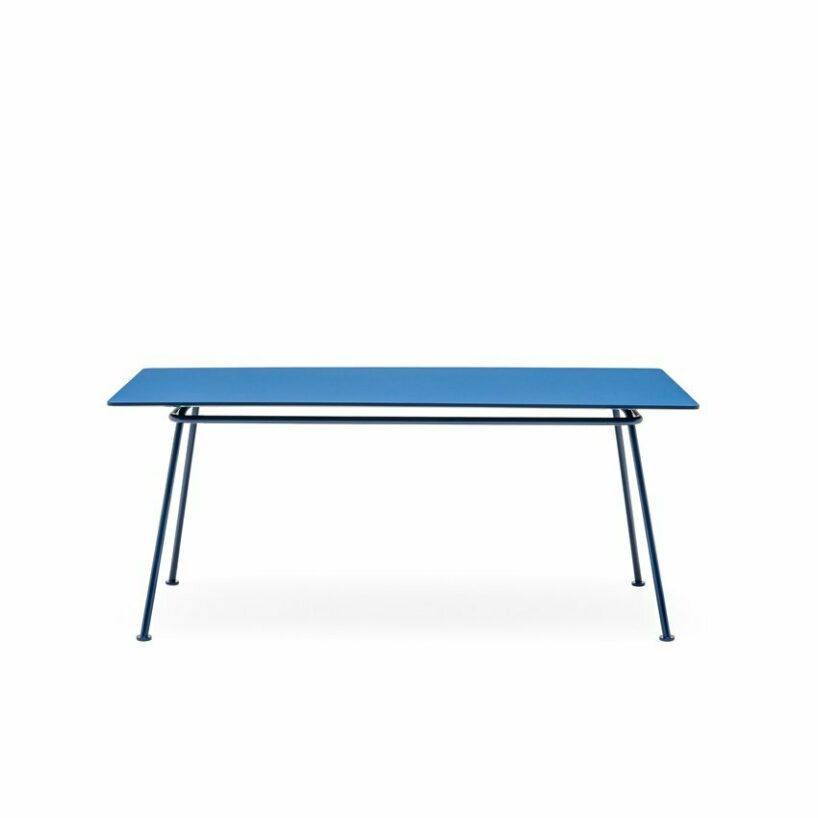 ‘the new school collection was created out of nostalgia. form us with love design studio was inspired by the familiar form of a traditional school chair.’  MDD shares. the distinctive bent tube frame was a starting point for a series of modern chairs and modular tables. the series is ever-growing, easy to update, and make your own. the aesthetic is repeated in each item and they all share similar details, which makes the entire series consistent. common traits of all elements are their light metal bases, modern design, contemporary materials, and intense colors. thanks to that, individual furniture looks different and at the same time matches one another harmoniously.