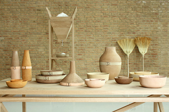 ‘autarchy’ includes vessels and lamps made from a bio-material composed of 70% flour, 20% agricultural waste and 10% natural limestone