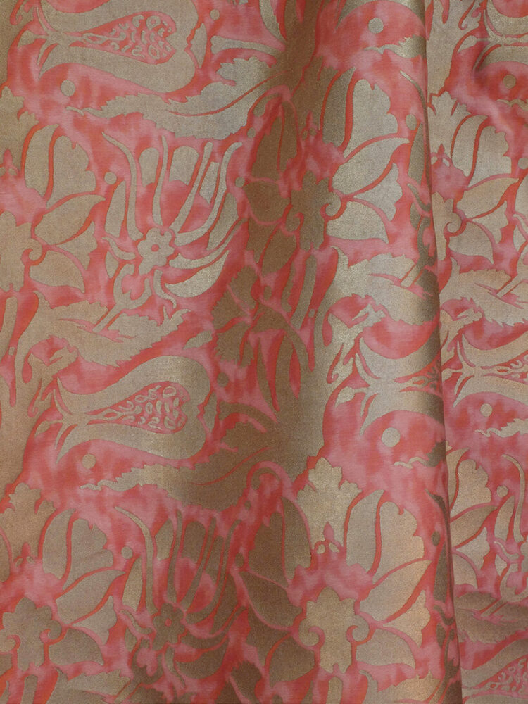 MR: they are, but we’ve gotten very good with being able to standardize what we do. if we need to reproduce something, we can come very close. every piece is unique, every piece does change. when it’s produced, it reflects the temperature and the humidity, it reacts with the raw material, all of that comes into play. what we say is that when you purchase a fortuny fabric, you’re not just purchasing a fabric, you’re purchasing a moment in history.