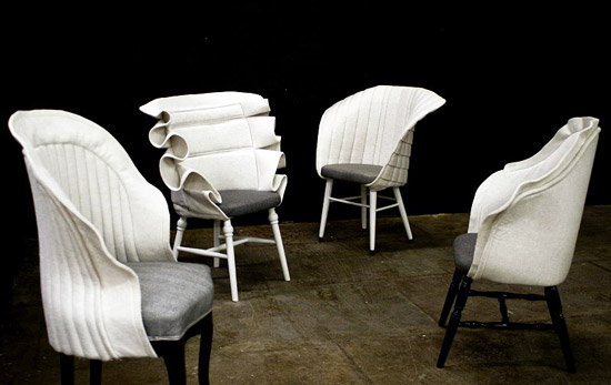 re:cover chairs being modeled on the designwalk senab at stockholm furniture fair 2010