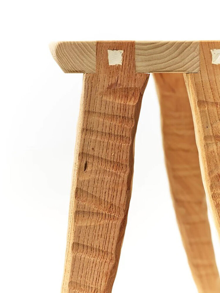 ‘the production of fuji stool requires the skill and knowledge of craftsmen who use hand tools such as knives, axes, saws and stools, and deep understanding and sympathy for design, making the best use of the wood of each land,’ said three travelers, the team in charge of the production. ‘the proportions born from that technique have an imperfect beauty that makes the best use of the nature and individuality of the wood, giving each one its own unique characteristics. and, like living things, it changes over time according to the environment.’