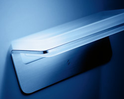 the watch features clean and simple surfaces machined from solid stainless steel