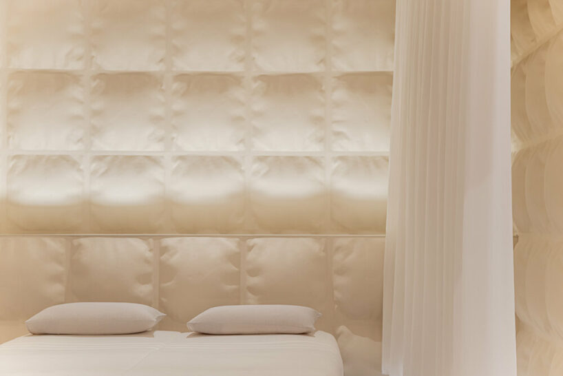 Following the brand’s belief that AI can monitor, assist, and teach us to sleep better, the consumer is invited to experience the mattress and the self-learning aspect of the technology inside the mattress. Using a pressure sensing heat-map, a real-time simulation of the core technology of Lito’s products is projected above the beds, illustrating how the mattress instantly adapts to your sleeping position, controls the mattress temperature, gets to know your body, and actively fits to the body’s curves, evenly distributing pressure to ensure the spine’s natural physiological position. ‘We wanted to get away from the idea a bed is a dormant object, rather introduce the feeling of the bed as an active piece of technology, that works in cadence with your movements to give you a better time of rest,reflects Kang Li, partner in the Storeage Group.