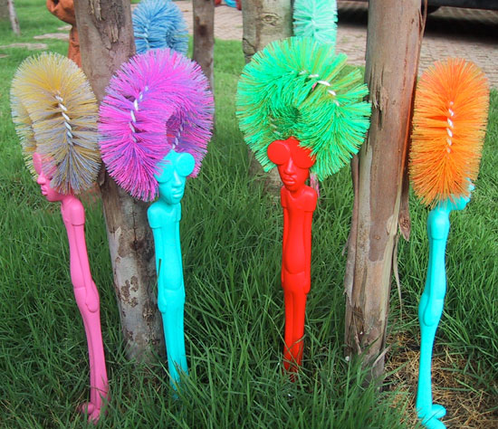 toilet brushes disguised as brightly colored ‘afros’