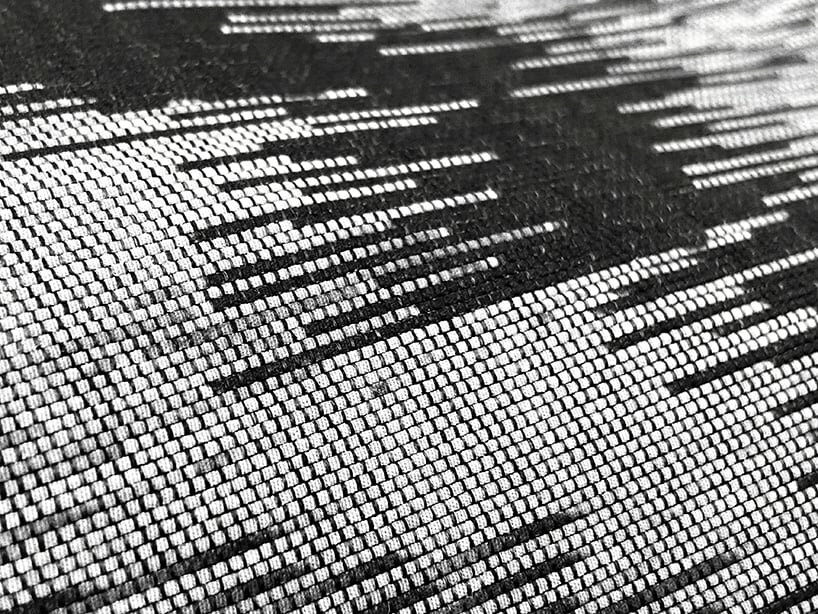 The details of the woven textile made out of waste materials.