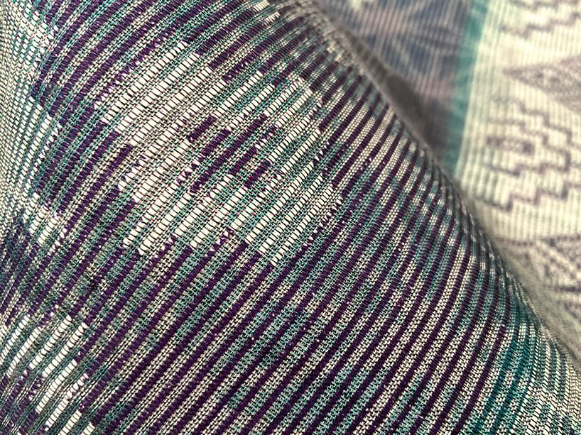 The details of textile. Collaboration Project with Toyota Tsusho Corporation. I was successful in creating designs and producing fabrics in collaboration with OMI JOFU craftsman in Shiga, Japan.