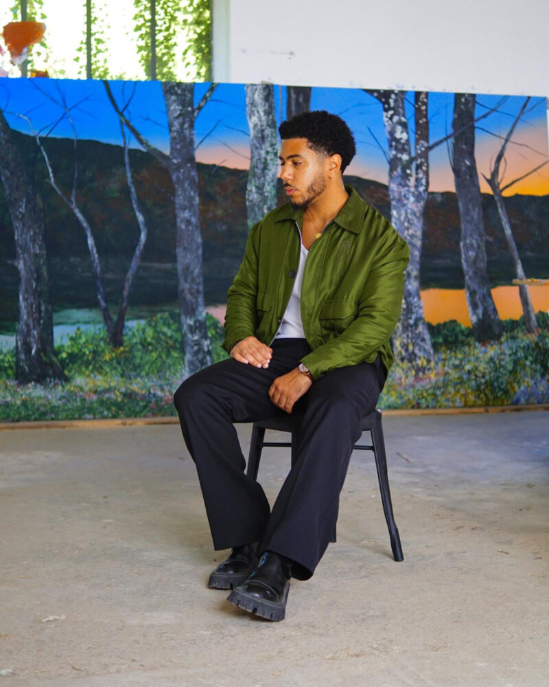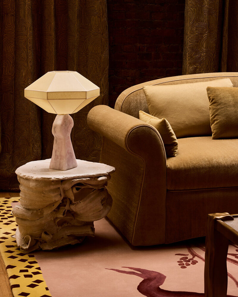 the show presents a dialogue between Gonzalez’s new resin lamps and paintings by Fabien Conti
