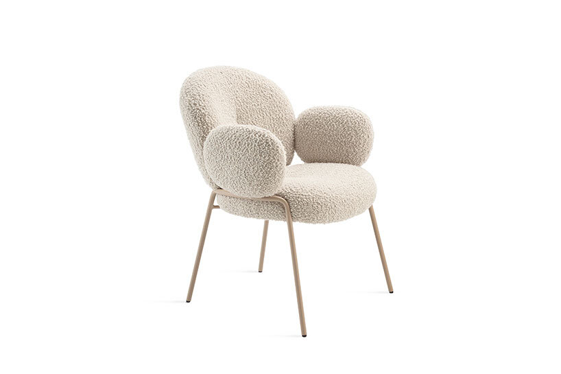 as a result, nana emerged as a masterpiece of balance: voluminous and refined at the same time, simple and perfect, unique and yet reassuringly familiar. the seat is available with or without armrests. the frame is made of powder-coated tubular steel. for the cover fabric, the designer and manufacturer chose the ultra-soft wool bouclé fabric nimbus from the textile company dedar, which is located near the italian city of como.