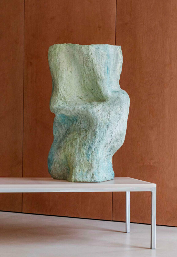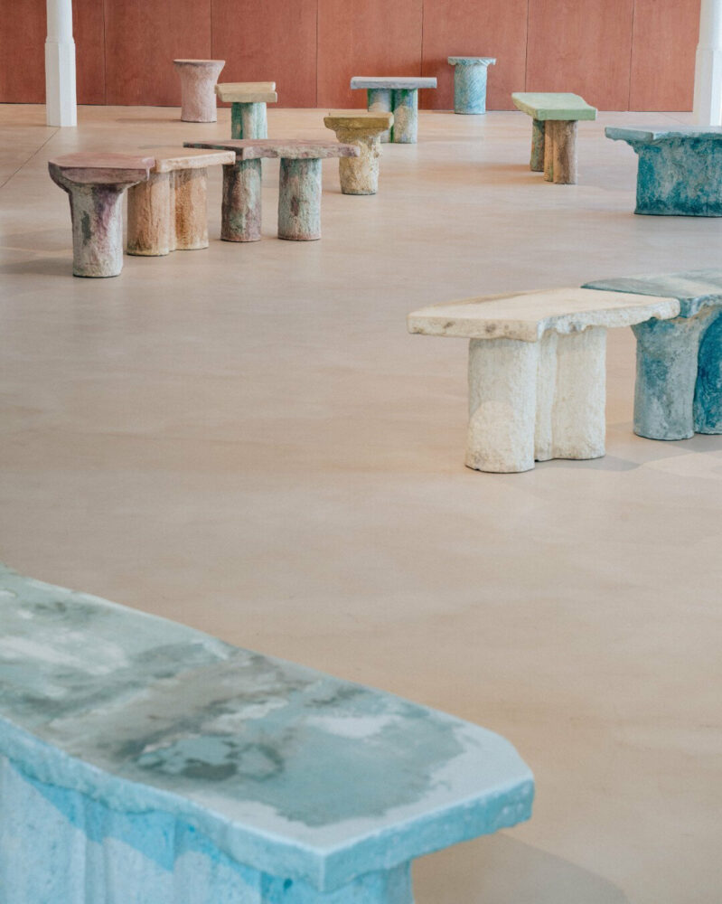 the design centers around a sculptural turntable topped with thirty-nine individual wooden tiles that flip and shift in real time as music plays.