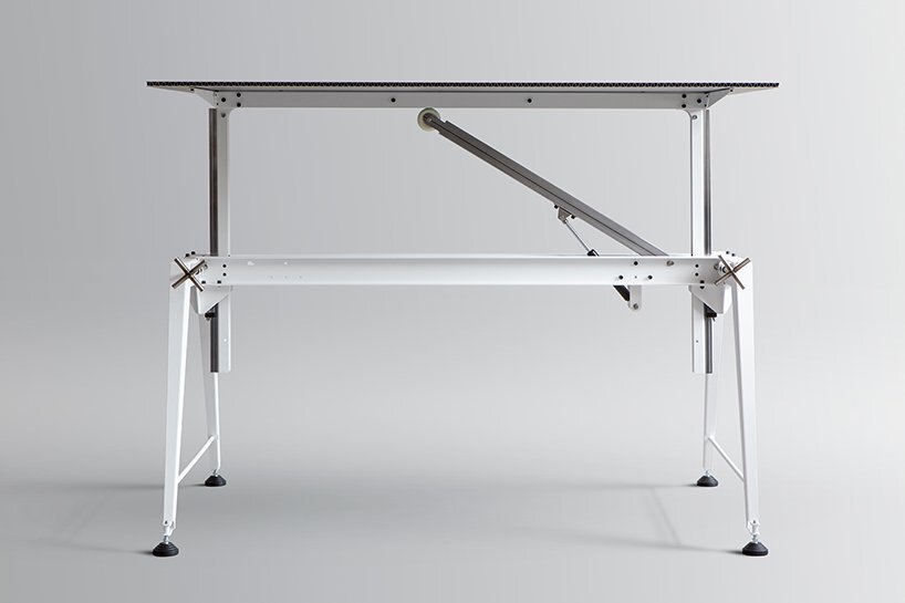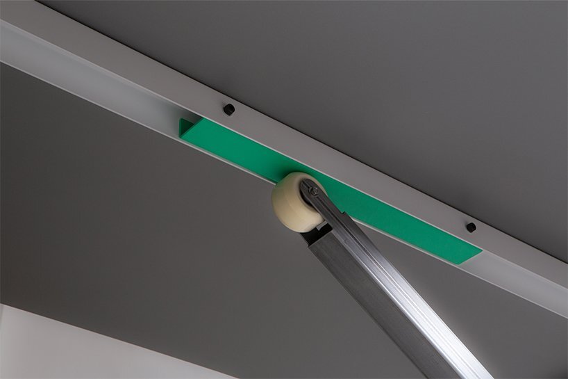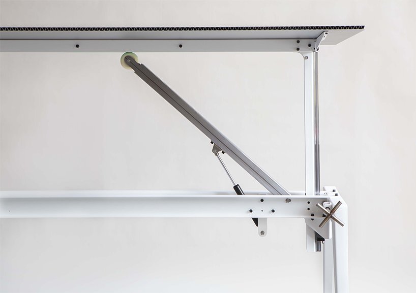 the design centers around a sculptural turntable topped with thirty-nine individual wooden tiles that flip and shift in real time as music plays.
