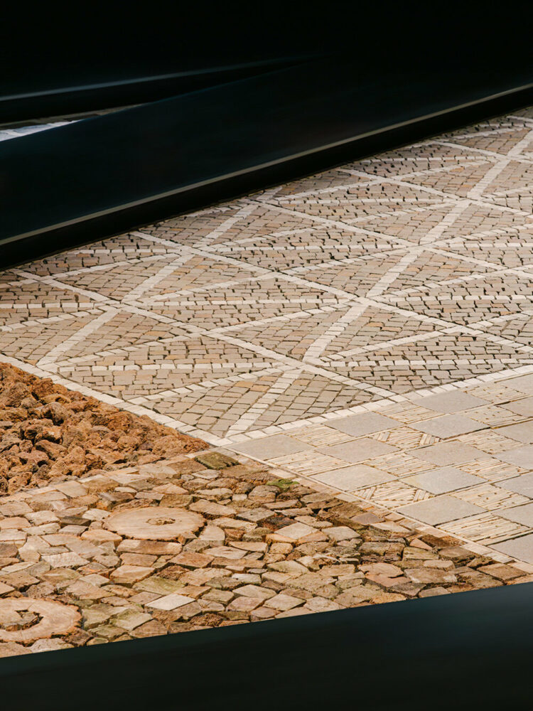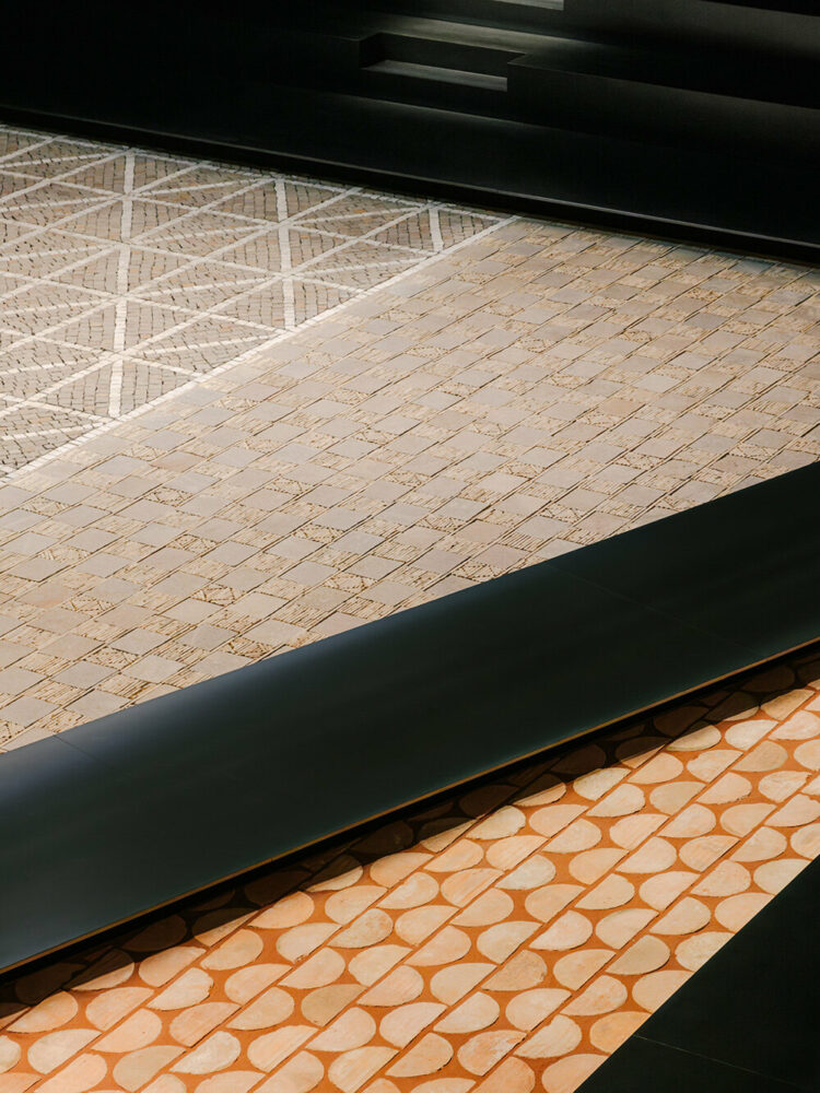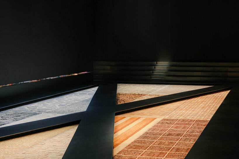 the design centers around a sculptural turntable topped with thirty-nine individual wooden tiles that flip and shift in real time as music plays.
