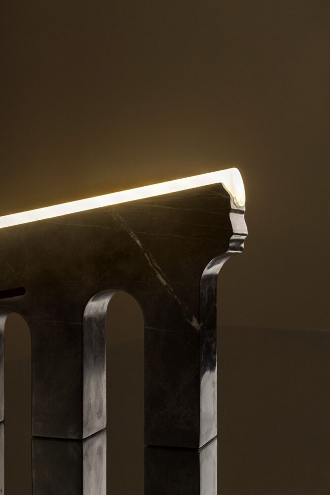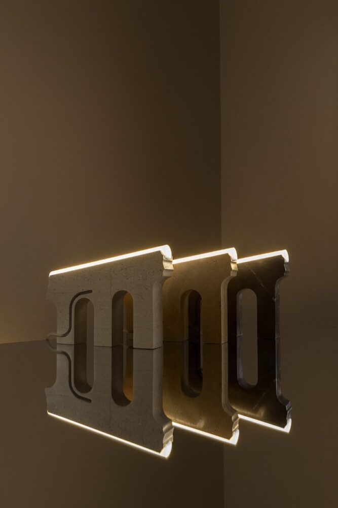 the design centers around a sculptural turntable topped with thirty-nine individual wooden tiles that flip and shift in real time as music plays.