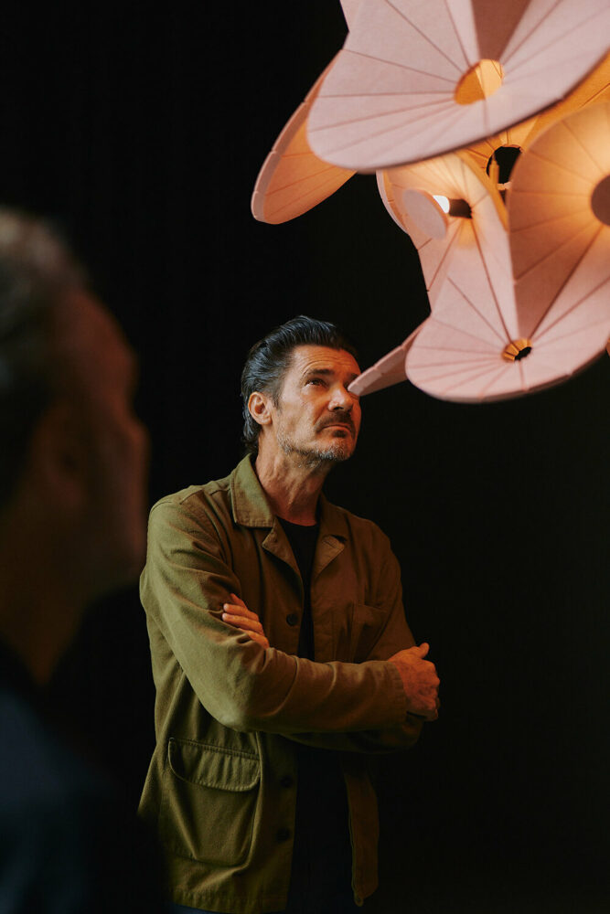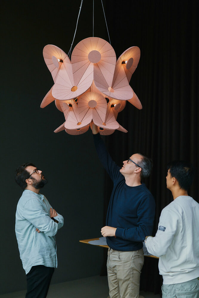 impact acoustic and atelier oï sculpt sound-absorbing luminaire using folded felt panels