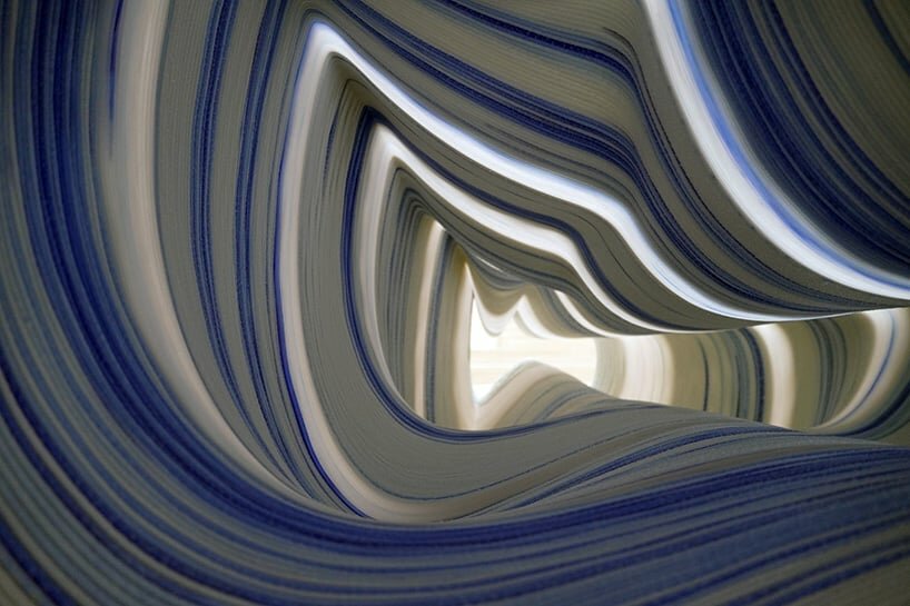 Emulating nature’s vibrant materialization, Glowscape is a 3D-printed installation that continually exudes a warm serene glow in dialogue with its user. The interactive illumination, designed as part of a digital fabrication workshop between Southeast University (SEU) Nanjing and ETH Zurich, invites the audience to sit on its intricately undulating form and engage in its rippling array of light. As people approach Glowscape, a soothing display of cool and warm hues begin to grow from inside and slowly ripples throughout the translucent gradient surface, exposing its rich textures.