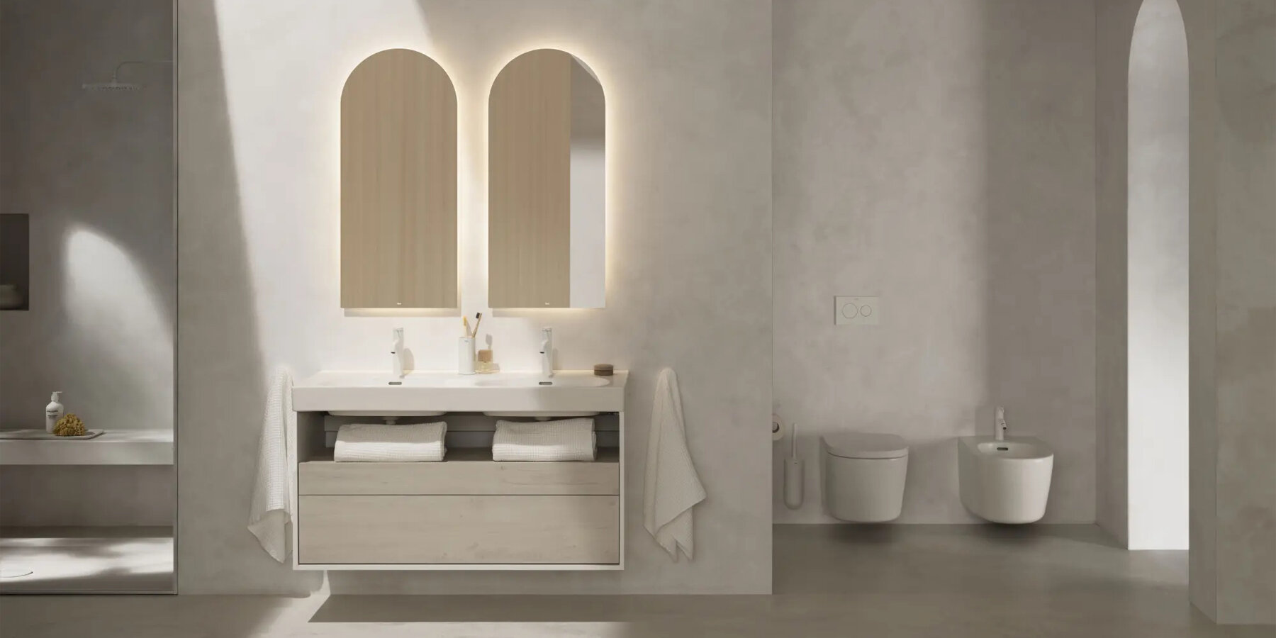 Altherr Désile Park’s sensitivity to context was vital when approaching Roca’s Meridian line. The original collection’s crucial DNA was the arch, a powerful symbol of Mediterranean architectural culture. ADP translated this spirit by drawing inspiration from the austere, vernacular expressions found in the Spanish, Portuguese, or Greek countryside. This design choice reflects a commitment to reduced, elemental shapes, the interplay of strong light and shadow, and the use of noble materials like ceramic, wood, and metal. While ADP also works in the luxury sector, this project offered a unique opportunity to translate the quality, care, and attention typical of luxury design into products that are accessible to a broader audience — a core value shared with the Spanish brand. Rejecting the idea of constant invention, their approach favors an evolution that is subtle and deeply sensed.