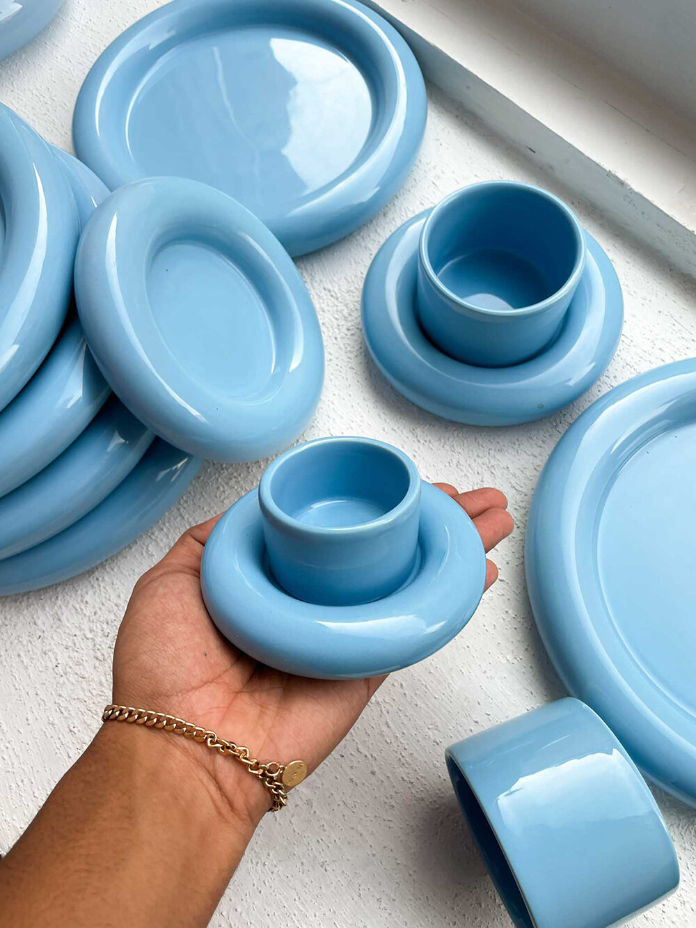 GW: My favorite material to work with is wood and I collaborate very closely with Swedish woodworkers in the process. I also like the fact that you can create the feeling of a certain texture using different materials. We have the ceramics, wood, metal, and now the glassware that all share the same glossiness, smoothness, and childish colors. But this is all still pretty new to me, and I’m still in the learning process; I’m trying to find more sustainable ways in terms of material sourcing.